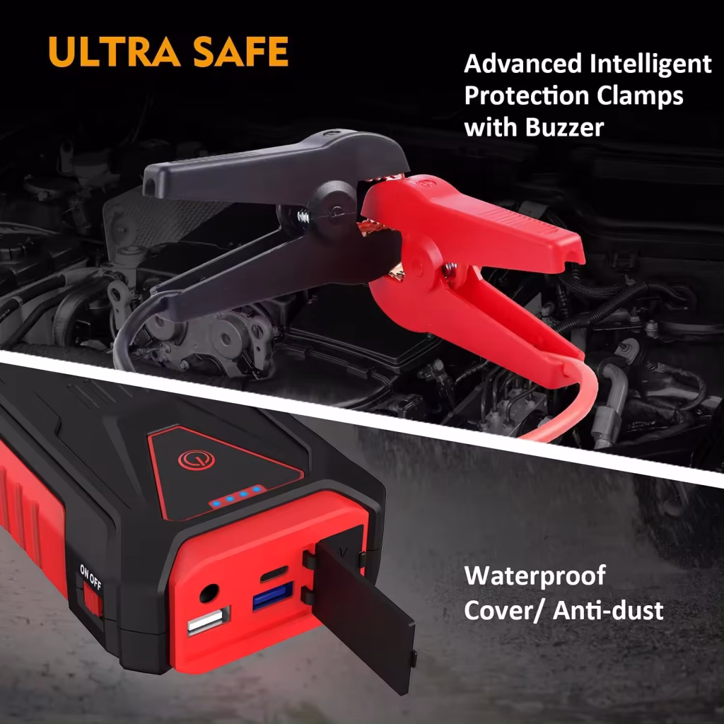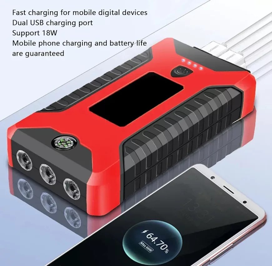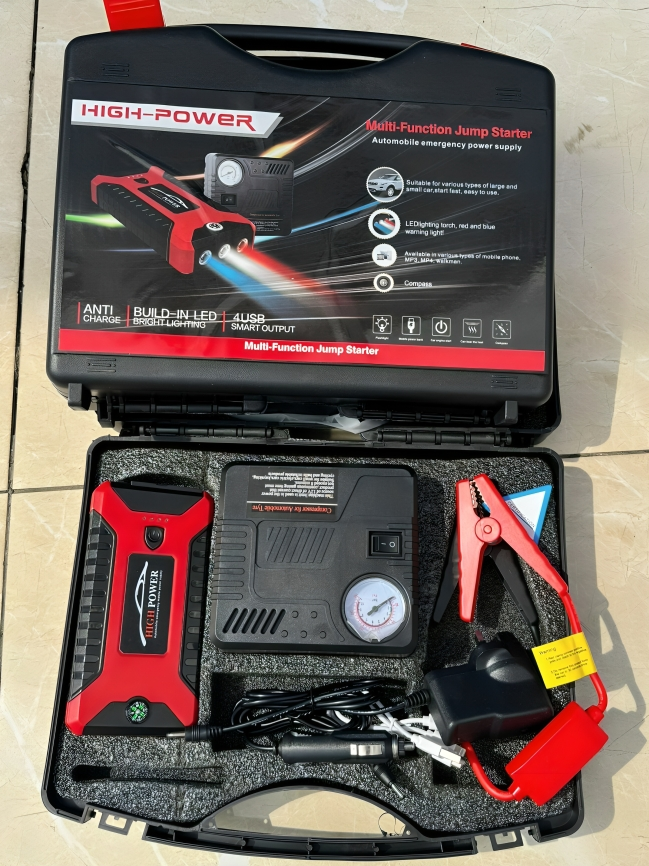 Portable jump starter & Tire Inflator Emergency Roadside Kit.
